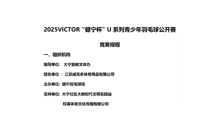 2025VICTOR“健宁杯”U系列青少年羽毛球公开赛